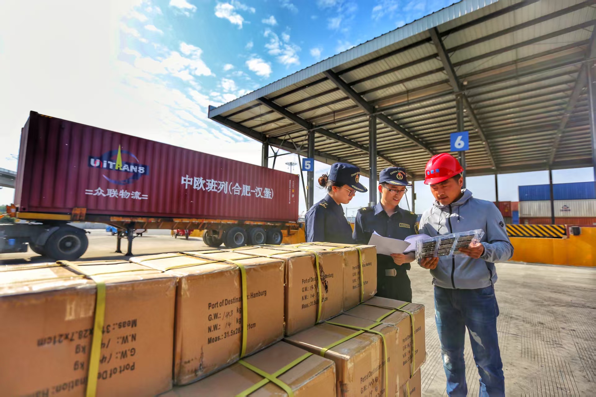陆运方面,“钢铁驼队”跑出加速度:全面推广“铁路快通”模式,2025全年安徽中欧班列累计开行突破1000列。国际跨境公路运输(TIR)业务在安徽落地实施,打通我省跨境物流“第四通道”。